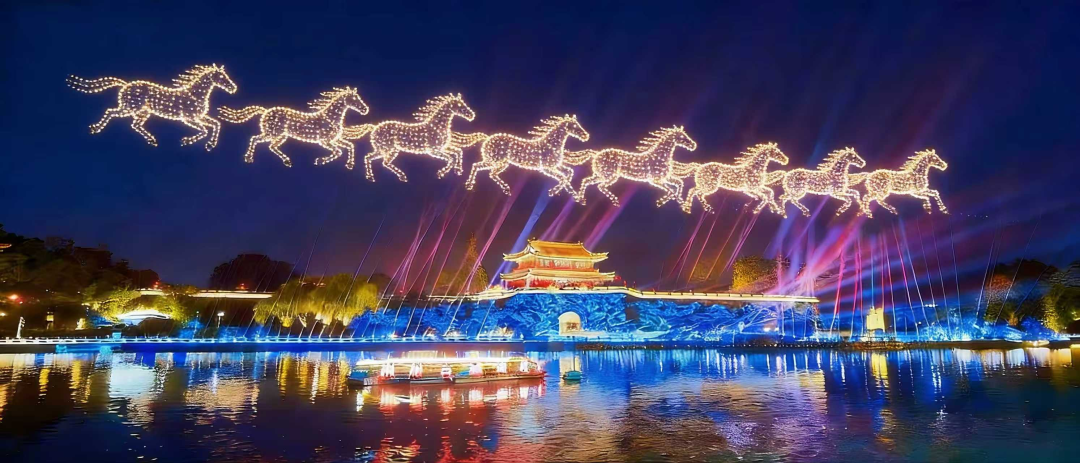 内容:配合地面演艺和护城河灯光,每天2000架无人机进行表演。表演区域在宾阳楼南边,操作区域在东门停车场1000平区域。