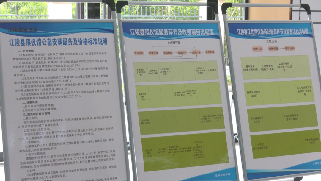 据县殡仪馆办公室工作人员周瑶介绍,所有服务项目及收费标准均在服务大厅、江陵县政府网站及微信公众号同步公示,推行清晰透明的消费账单,让群众对各项费用一目了然,切实维护群众的知情权和选择权。