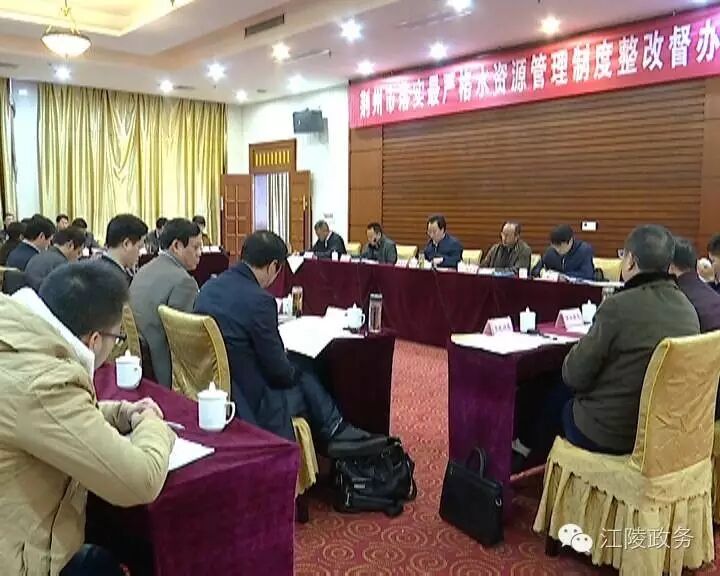 会上,荆州市水利局局长郝永耀通报了2015年度全省和全市最严格水资源管理制度考核情况,江陵县的考核等级为优秀,在全市9个行政区中排名第一。会上,荆州市各县市区政府和荆州开发区管委会负责人做了表态发言。