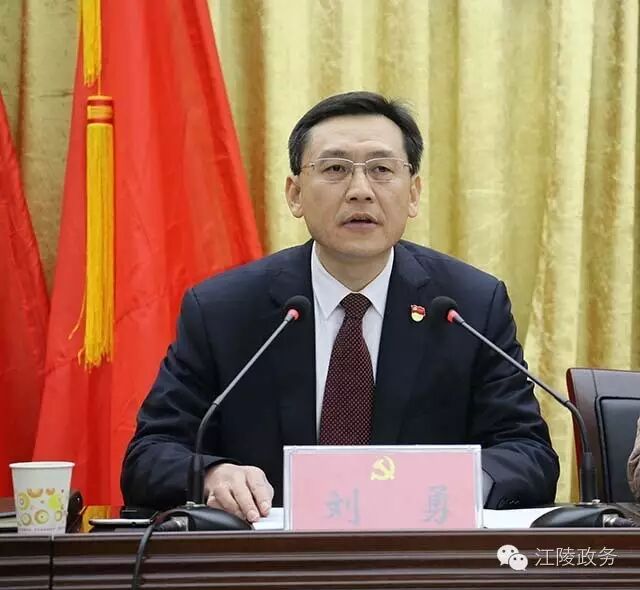 新当选的县委书记刘勇发表讲话。刘勇说,从现在起,第五届县委正式接过四届县委的担子,同广大党员干部和人民群众一道,踏上了“加快建设‘两区一中心’、全面建成幸福小康新江陵”的征程。