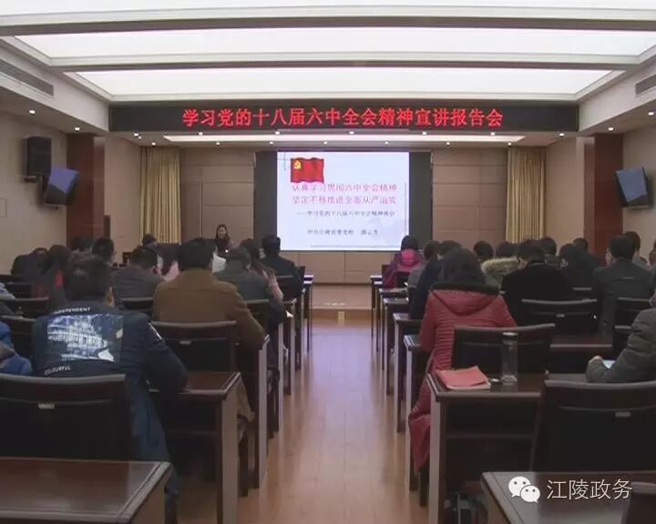 云上江陵报道:12月5日,江陵县县委办公室和政府办公室、信访局、行管局组织党员干部集中学习十八届六中全会精神和县第五次党代会精神。县委宣讲团成员邵云芳作了题为“认真学习贯彻六中全会精神,坚定不移推进全面从严治党”的报告。