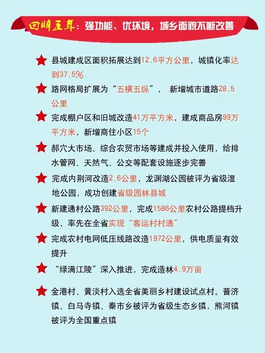 五年来,江陵县抢抓国家能源通道与长江黄金水道交汇带来的重大历史机遇,坚定不移实施沿江发展战略,着力筑平台、强产业、兴城市、惠民生,发展条件日臻成熟,重大项目强劲突破,城乡面貌焕然一新,人民生活显著改善。