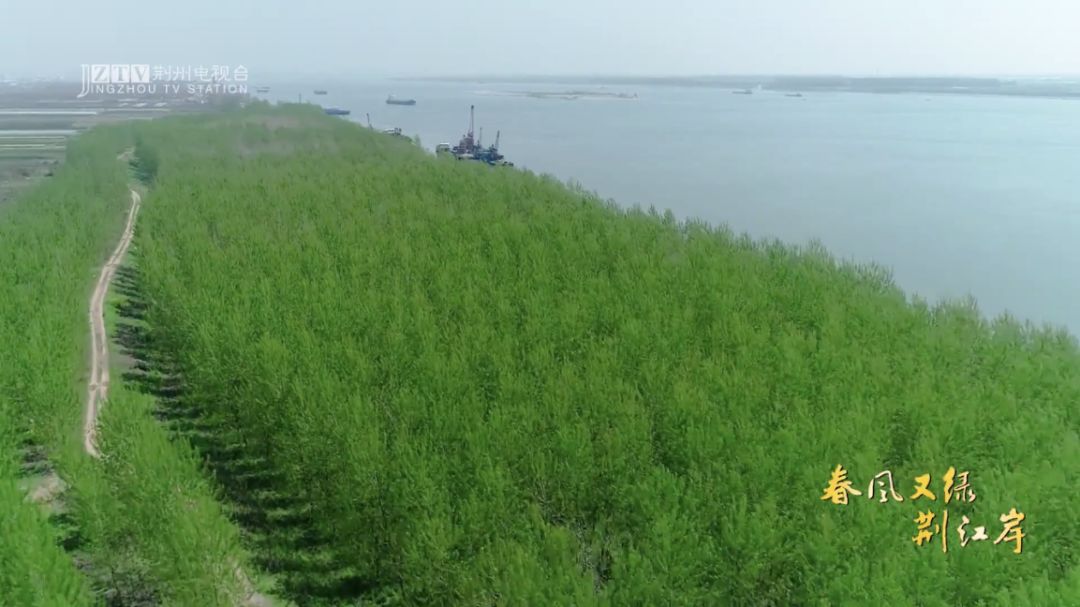 如今的荆江大堤江陵段,岸边绿树春影斜,江中碧水幽自映,游人如织,江鸟成群,好一幅美丽山水画。