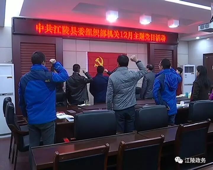 云上江陵报道:为认真学习贯彻党的十八届六中全会精神,扎实推进“两学一做”学习教育活动,12月20日,江陵县委组织部机关党支部开展了12月主题党日活动。县委常委、组织部部长杨征民,县人大常委会副主任、组织部副部长张海云以普通党员身份参加了主题党日活动。
