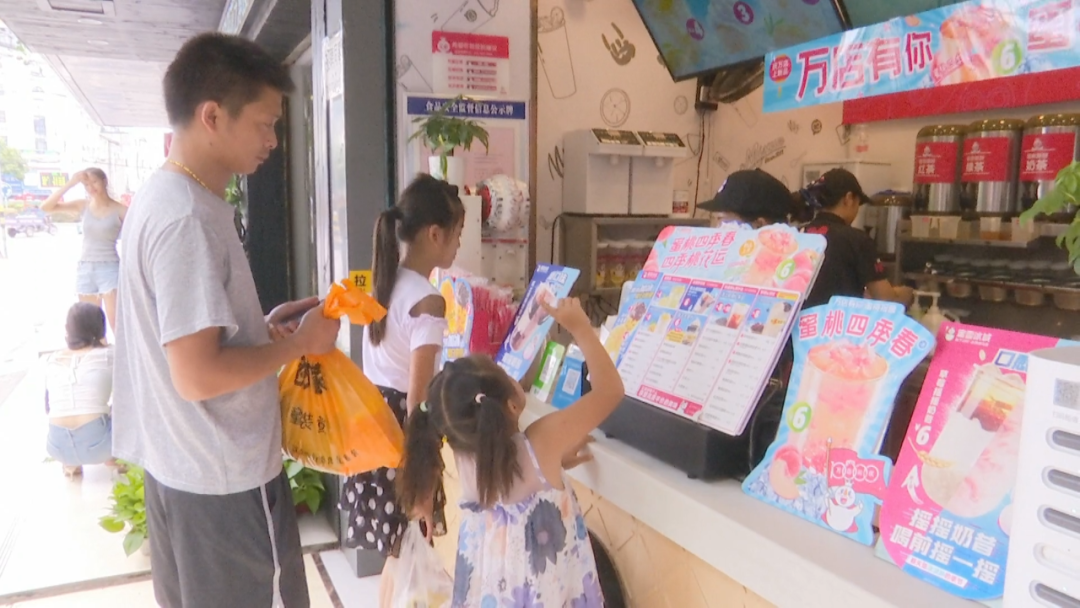 人头攒动的不止是各大商超,城区的各家冷饮店同样生意火爆。在步行街的一家冷饮店,不到二十秒,一个奶油冰淇淋就在店员的手中成型。这样清凉的一杯甜点,总能恰到好处地打开盛夏的味蕾。