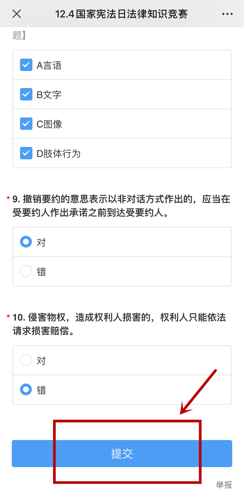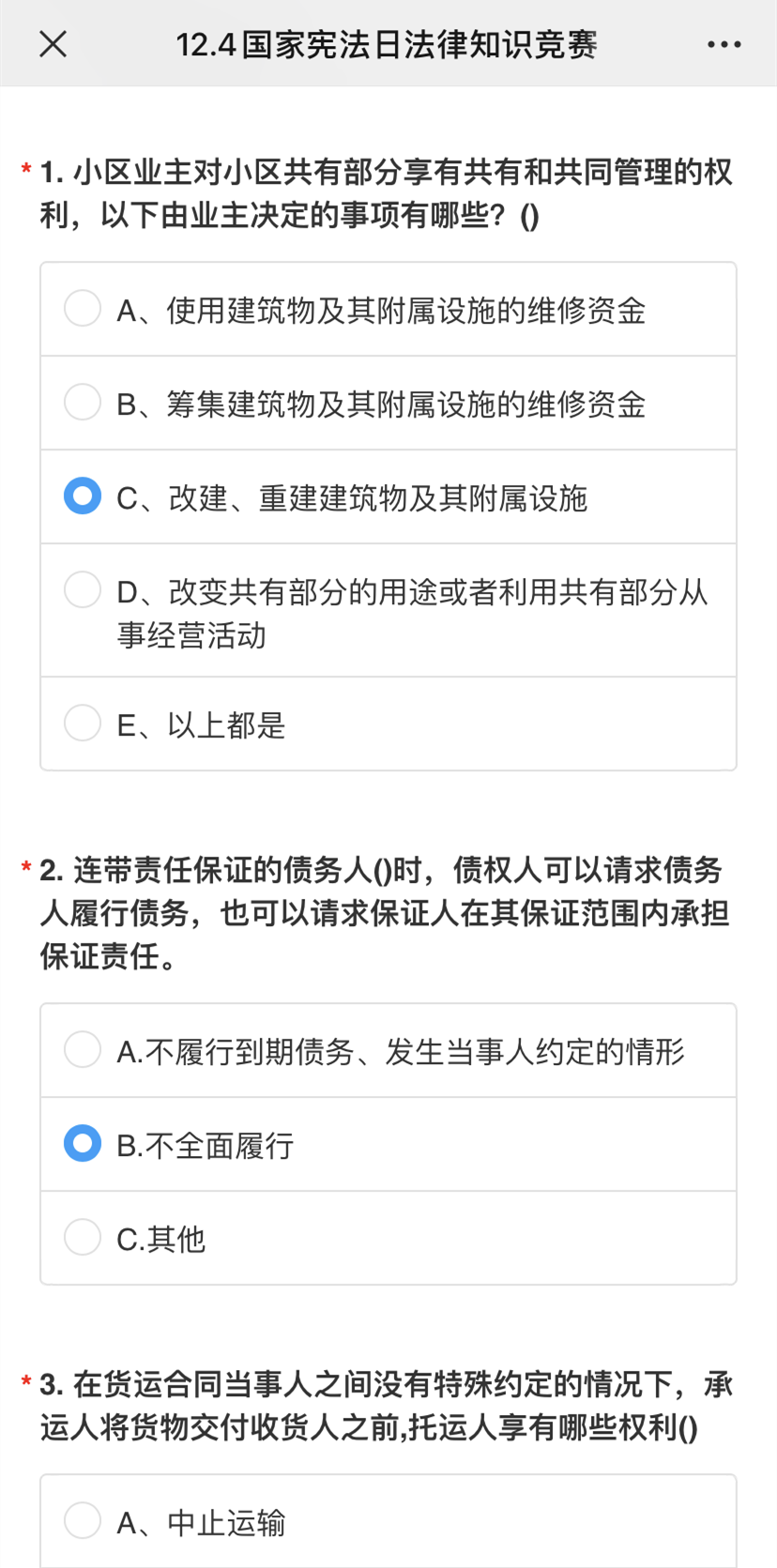 本次竞赛活动采用积分制,关注“新江陵”微信公众号参与线上答题,每天答题次数不限,系统自动记录答题次数及分数,取最高分为当天的积分。活动结束后,个人累计积分排名前10的人员,将获得“学法优秀个人”荣誉证书及纪念品,根据各单位活动参与率及均分情况,评选出优秀组织奖3名,并颁“发优秀组织”奖牌。