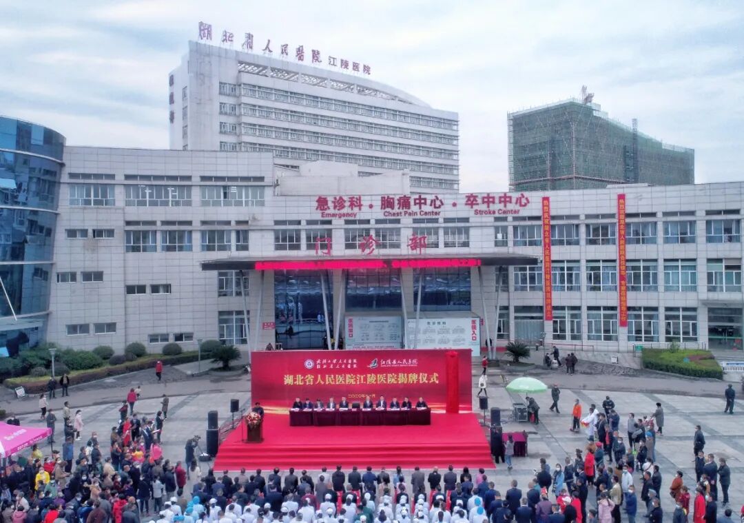 湖北省人民医院党委书记万红慧、县委书记刘勇共同为湖北省人民医院江陵医院揭牌。揭牌仪式结束后,双方签订了《合作协议书》,并为心血管内科、血液透析科、呼吸内科、病理科专科联盟、眼科专家工作室等科室授牌,来自省人民医院的专家还在江陵医院广场开展了义诊活动。
