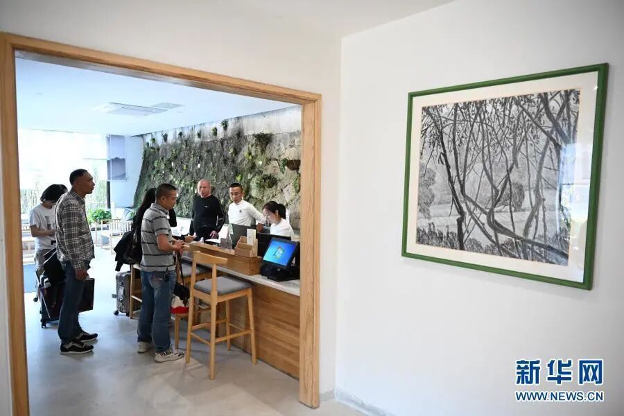 在福建省三明市泰宁县大金湖畔的一家旅游民宿前台,刚抵达的游客在办理入住手续(11月20日摄)。新华社记者 姜克红 摄