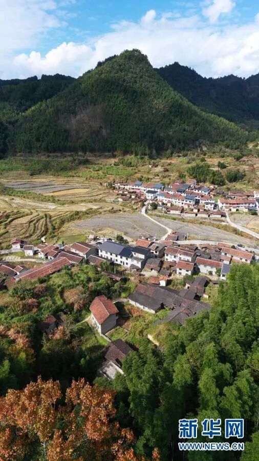 位于福建省三明市泰宁县新桥乡东部山区的革命老区基点村岭下村(无人机照片)。新华社记者 姜克红 摄