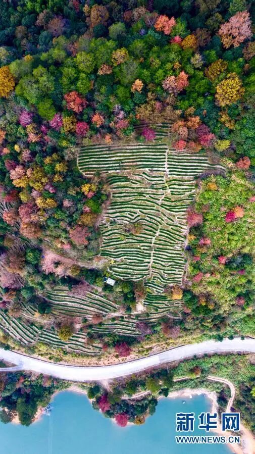 福建省三明市泰宁县大金湖畔一处高山茶园(11月20日摄,无人机照片)。新华社记者 姜克红 摄