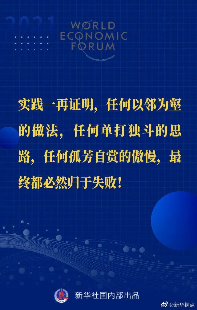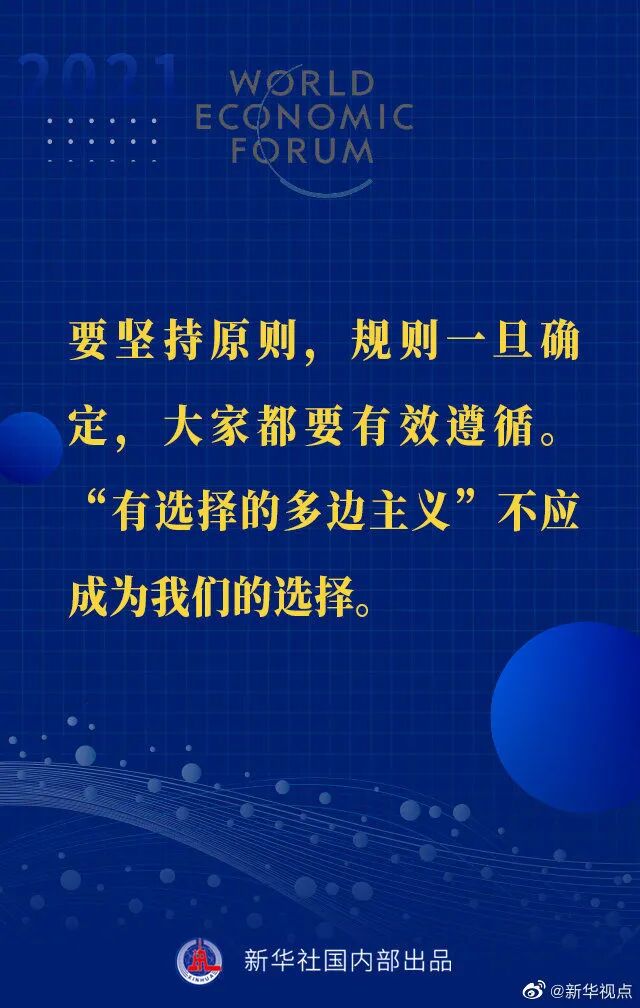 1月25日晚,国家主席习近平在北京以视频方式出席世界经济论坛“达沃斯议程”对话会,并发表题为《让多边主义的火炬照亮人类前行之路》的特别致辞。一起来看金句↓↓