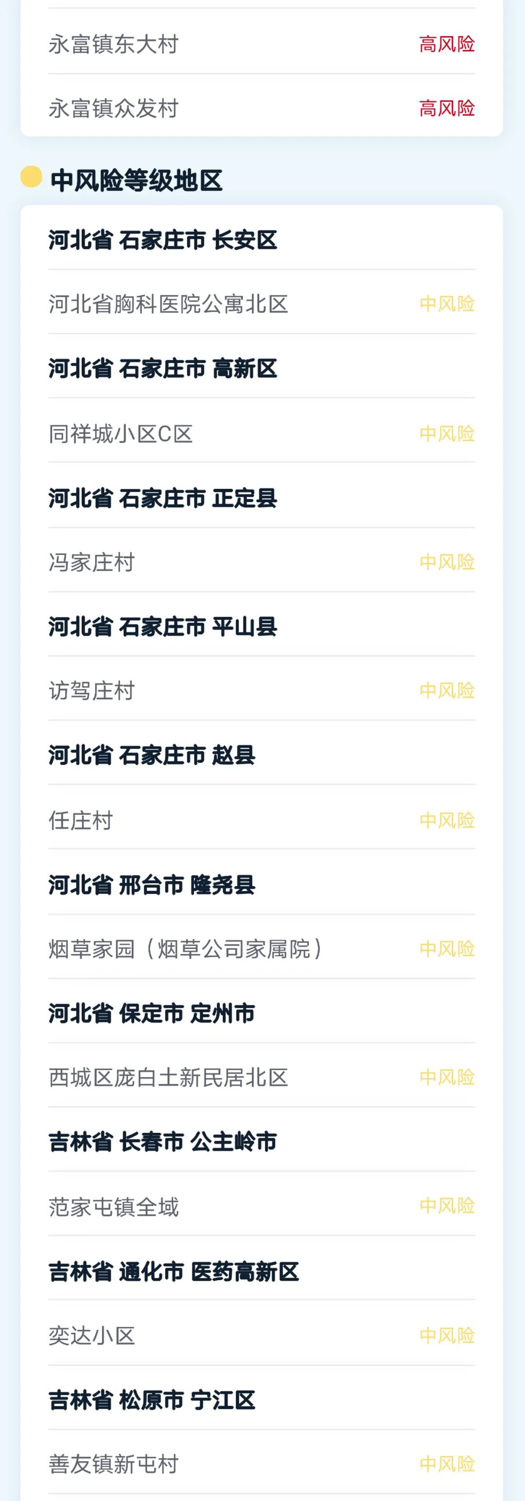 全国中高风险地区最新名单