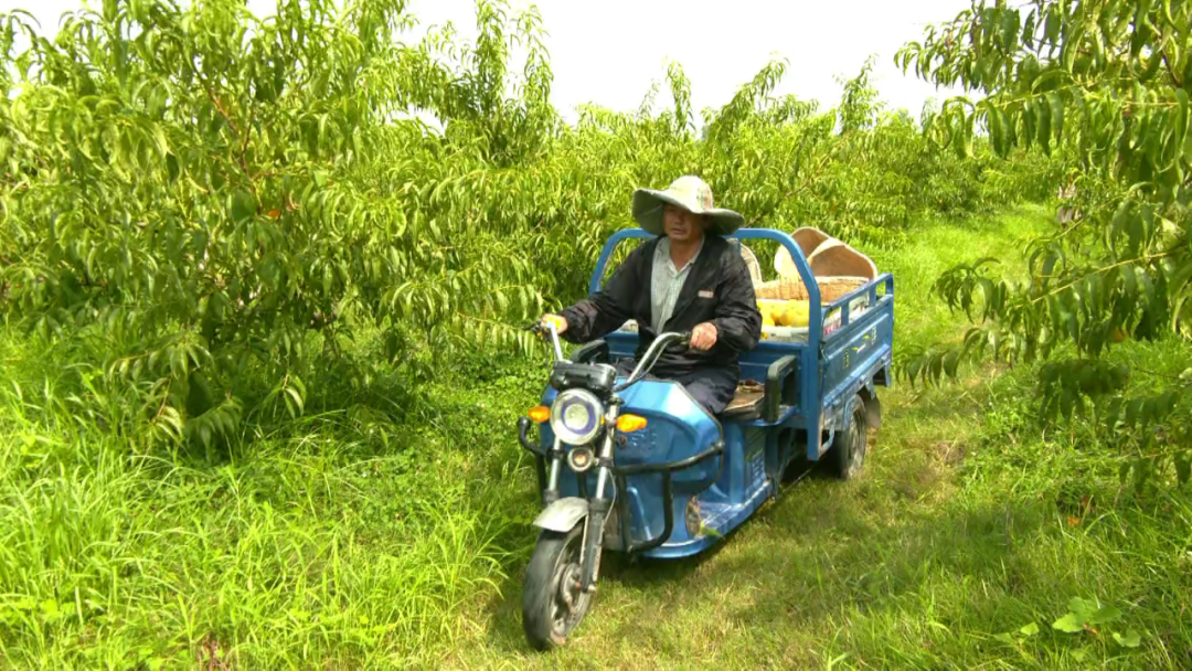 三湖黄桃的品牌效益,不仅赢得了各地游客的青睐,更为村民提供了不少就近就业的机会。经过30多年的发展,三湖管理区的黄桃种植面积已经达到1万亩。桃树在除草施肥、病虫防治、摘果装运等环节需要大量人手,今年57岁的孔祥兵在黄桃种植基地务工,不用外出就可获得高收入。“一个月6000元钱左右,我觉得非常满意、幸福。”孔祥兵说。