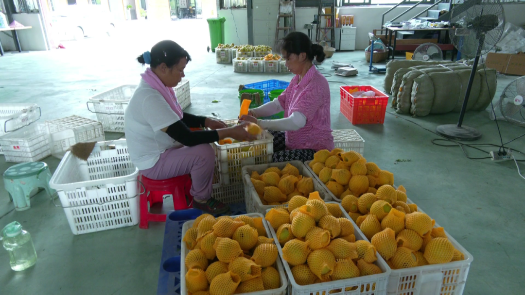 在基地包装车间,工人们正在抓紧处理刚摘下来的新鲜黄桃,有条不紊地进行分拣、打包、装箱。基地负责人杨巧玲告诉小新,黄桃刚进入成熟期,省内外新老客户的网络订单就纷至沓来。为了应对销售高峰,他们不仅扩增了分拣生产线,同时与各个电商物流企业做好对接,保证出货渠道畅通。