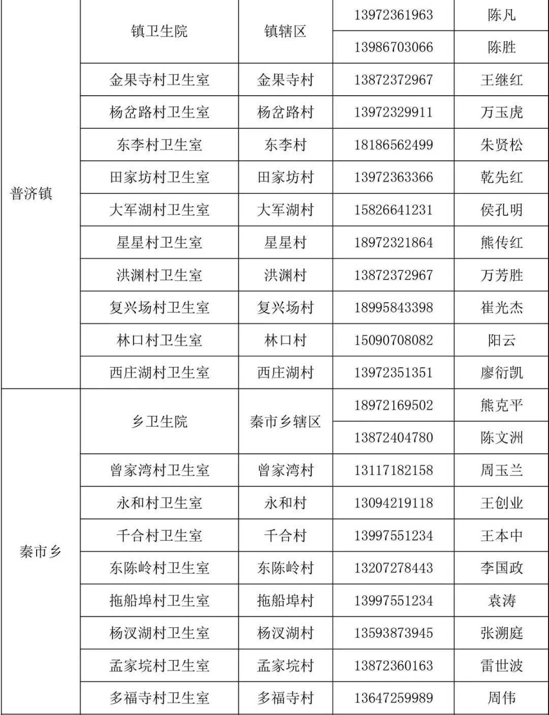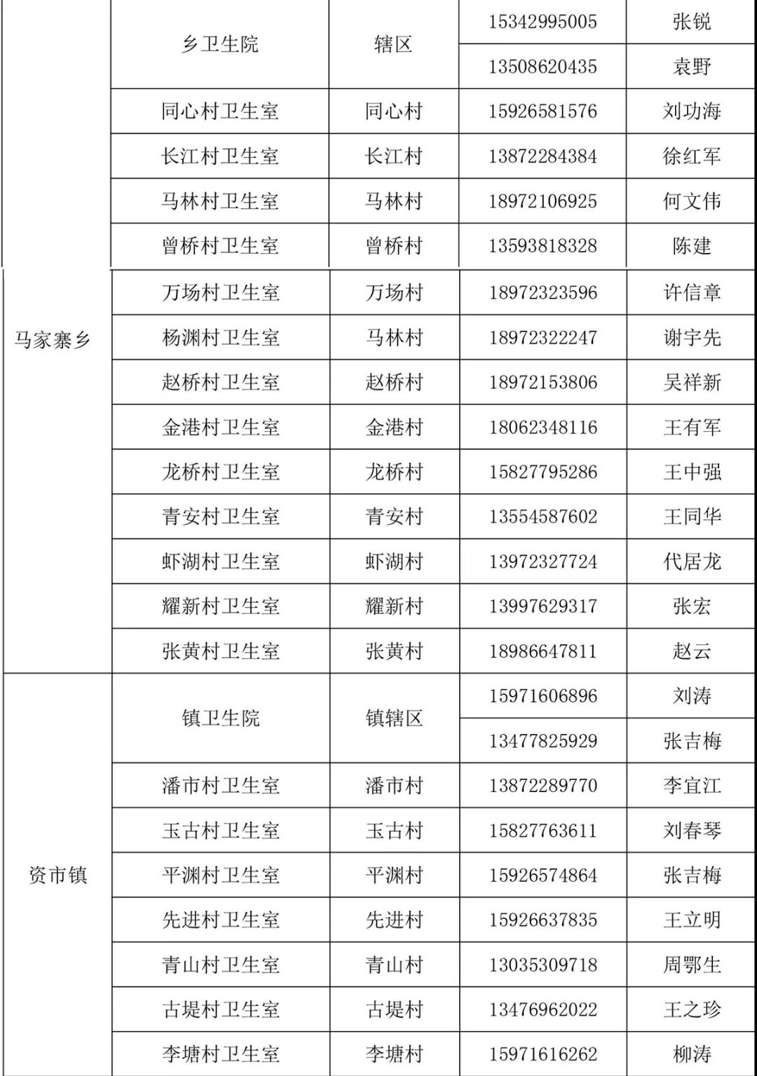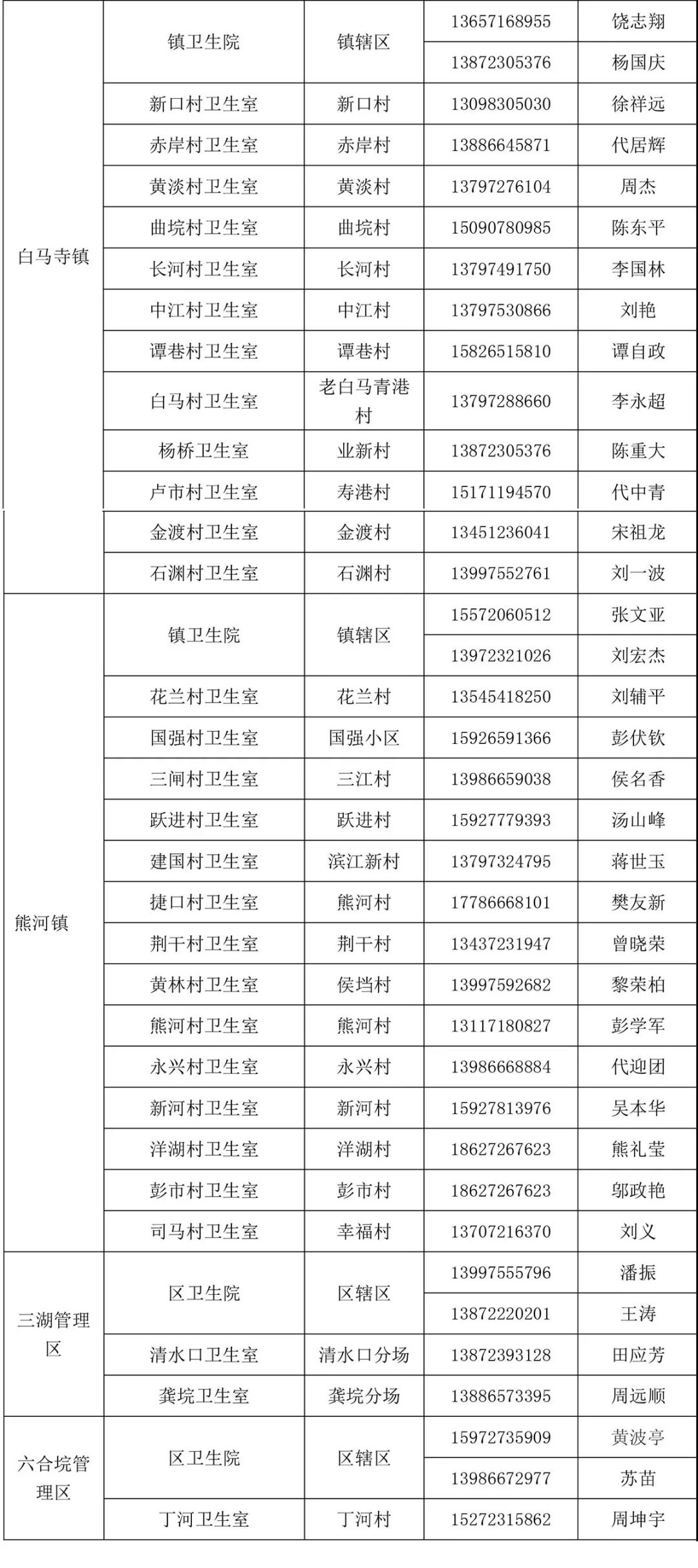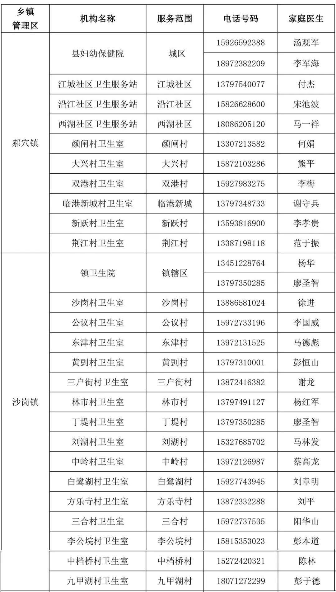 附件:江陵县家庭医生服务范围和联系方式