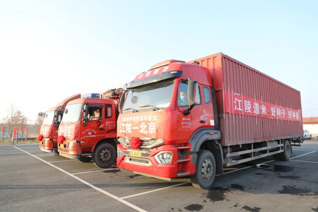 活动现场,装载上千份江陵道米的物流车辆在欢乐的音乐声中鸣笛发车。本次“江陵道米”直供北京央企,彰显着千里江陵区域公用品牌正在大步走出江陵、迈向全国。