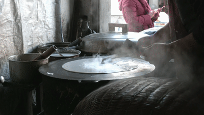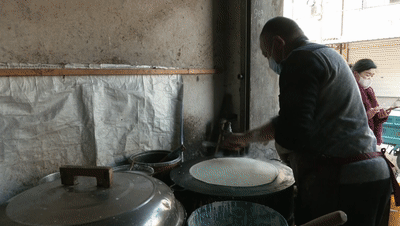 豆皮店老板 李师傅:从凌晨十二点做到晚上七八点,每天有很多人来购买。