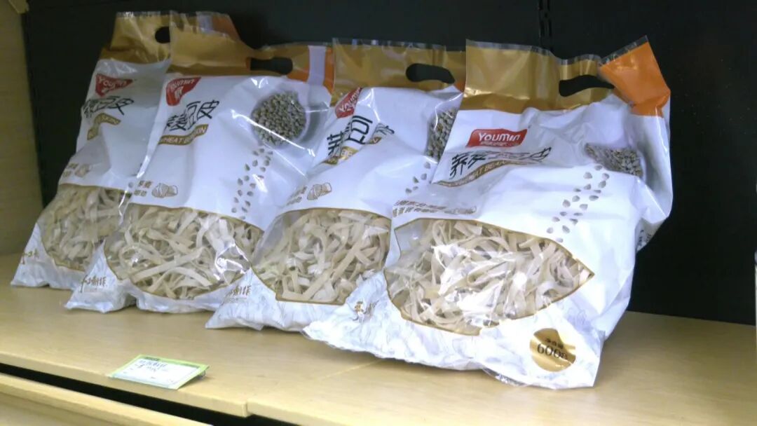市民 冉霞:我们从外地回来过年,很想念家乡的味道,这种包装的豆皮直接拿回去在锅里煮一煮就可以吃了,特别的方便,也非常实惠。