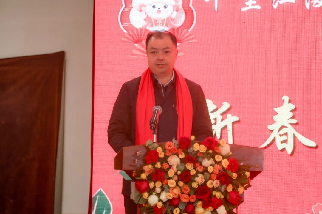 全运宝代表县委县政府,向各位嘉宾表示诚挚的欢迎,并致以新年的祝福!全运宝说,江陵近年来取得的成绩是所有江陵人共同努力的结果,荣誉属于每个江陵人,也属于在座的各位。希望所有嘉宾一如既往地关心江陵、宣传江陵、投资江陵,把我们共同的家乡建设得更好,加快谱写江陵全域绿色高质量发展新篇章!