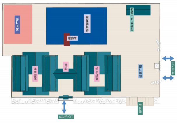 青山村共享民宿-青山猎云居占地面积10500平方米,建设内容主要包括议事大厅、宴会大厅、楚王行宫等,是一个集研学、餐饮、民宿于体的楚文化活化体验综合体,用于承办周边各类宴席,举办楚风婚礼,体验楚国分餐制餐饮文化,享受楚王行宫住宿体验。