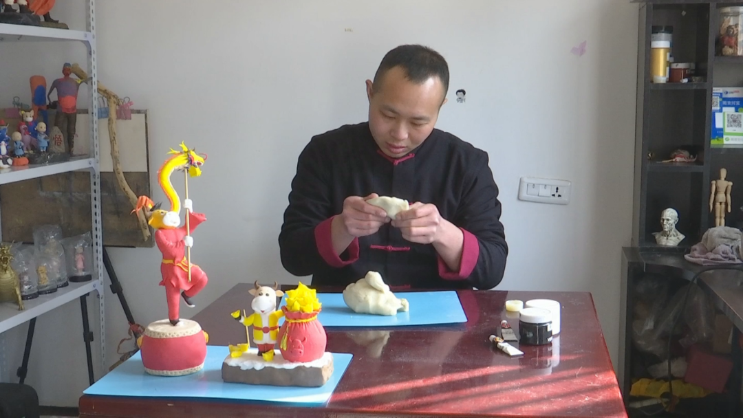 2021年“面塑”项目由江陵县非遗保护中心向荆州市非遗保护中心申报,成功获批荆州市第四批市级非遗保护项目。王淼作为江陵县非遗保护项目“面塑”代表性传承人,从小在爷爷、父亲的耳濡目染下对面塑艺术产生浓厚兴趣。2008年,王淼到山东参加一个传统文化活动,惊叹其他面塑艺人精湛的技艺,遂萌生了系统学习、把面塑当事业来做的念头。为此他遍访国内名师,潜心学习南派北派面塑艺术,吸取各派精华所长,跟随西安雕刻大师郑更民学习雕刻工艺,跟随沈阳面塑大师学习合面调色技巧。王淼还带着自己创作的面塑作品奔走各地,积极参加各种文化展会和民间庙会。