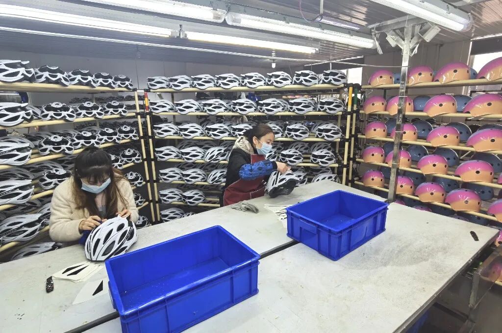 在荆州市泰克体育用品有限公司的头盔组装车间,工人们正在赶制出口到英国和澳大利亚的头盔订单,贴搭扣、粘标签、装排笔、上吊卡、打包装箱,每道工序无缝对接,配合默契。为保障产品品质,每一件产品要通过30多项测试后才能出厂。