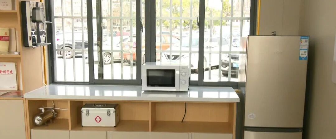 江陵城区转盘处,车水马龙,热闹非凡。有一所非盈利性质的驿站——江小驿,散发着别样的气质,站内有不少在此歇脚的外卖员和快递员。仅仅30平方米的小屋包含了空调、电视机、冰箱、饮水机、微波炉、桌椅等设备设施,纳凉、取暖、充电等生活服务十分齐全。