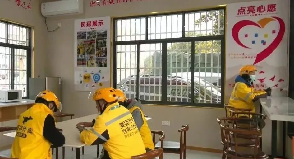 外卖员彭志强:我们跑单累了可以在这里休息、充电,非常方便。