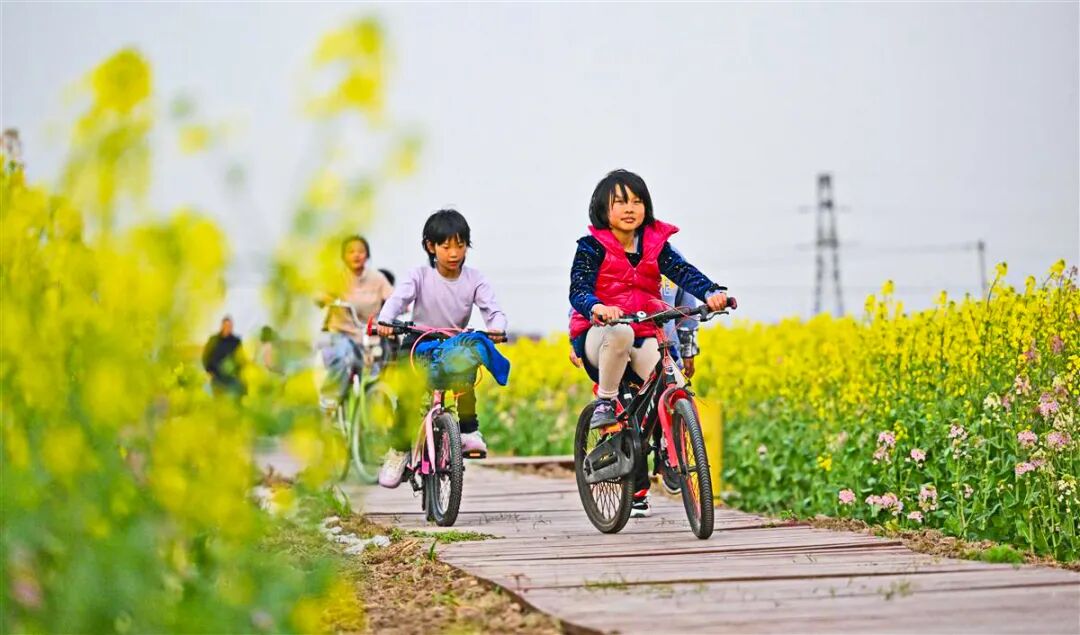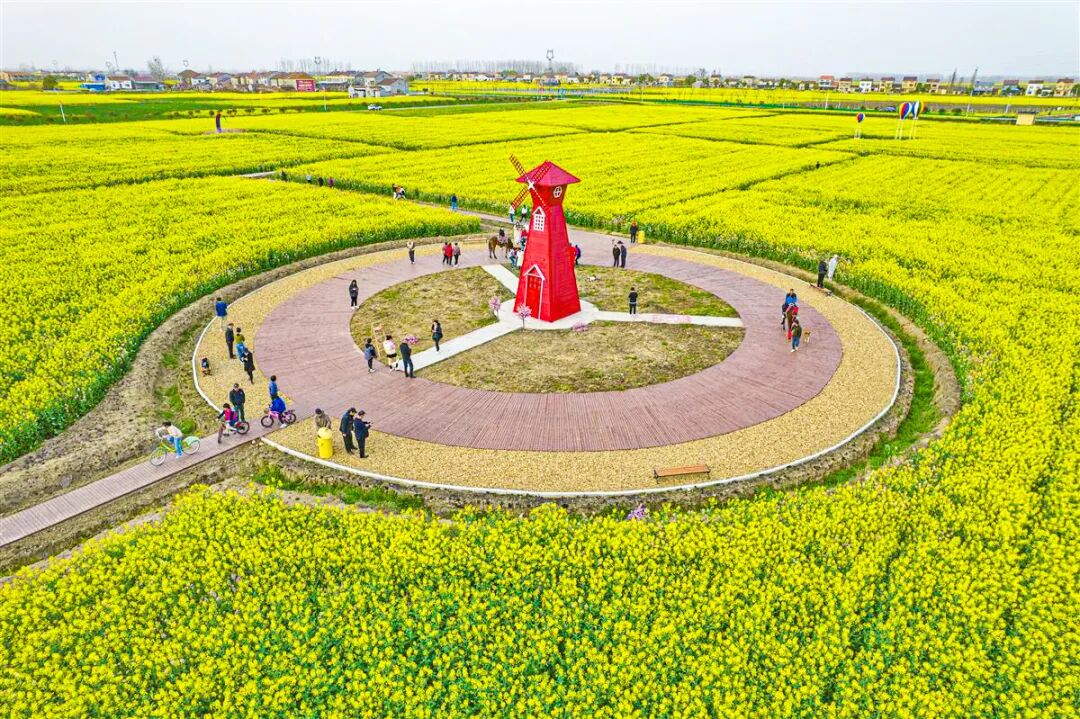 3月12日,江陵县资市镇一望无际的油菜花海花势正旺,来自荆州、宜昌等周边城市的游客自驾来这里踏青赏花。眼下江陵县三十多万亩油菜花竞相绽放,金黄色的油菜花扮靓大地,放眼江汉平原,如金色的诗画。江陵县为全国重要的产油大县、油菜优势产区,常年油菜种植面积34.4万亩左右。当地围绕全域旅游发展思路,结合农村环境整治和美丽乡村建设,举办油菜花节等旅游活动,充分发掘油菜花的文化内涵,大力推进休闲农业和乡村旅游发展,深度做好农旅融合大文章,带动群众增收致富,助推乡村振兴。