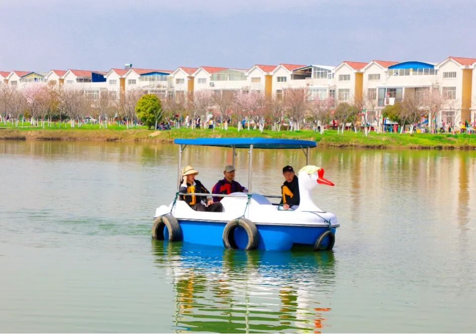 六合垸樱花谷内服务功能齐全,不仅有小火车、秋千等众多儿童游乐设施,小商铺、小吃街、民宿,停车场等软硬件服务设施也是一应俱全,为游客开心游玩提供了强有力的保障。