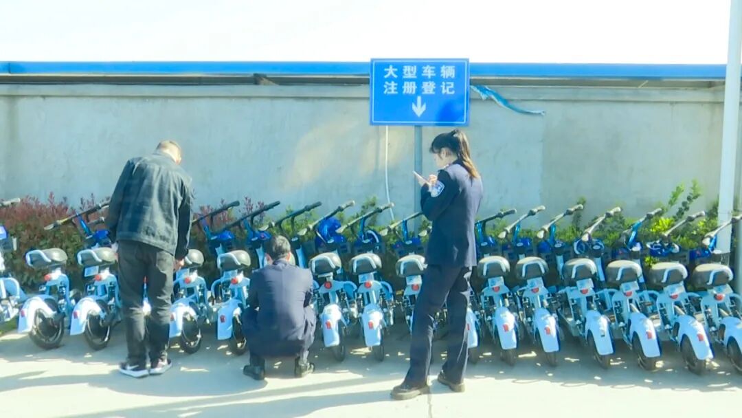14日,在县公安局交管大队车辆管理所民警正在对共享电单车分批办理注册登记上户手续认真核对公司资质和车辆技术参数并依照规定对车辆进行落户、上牌