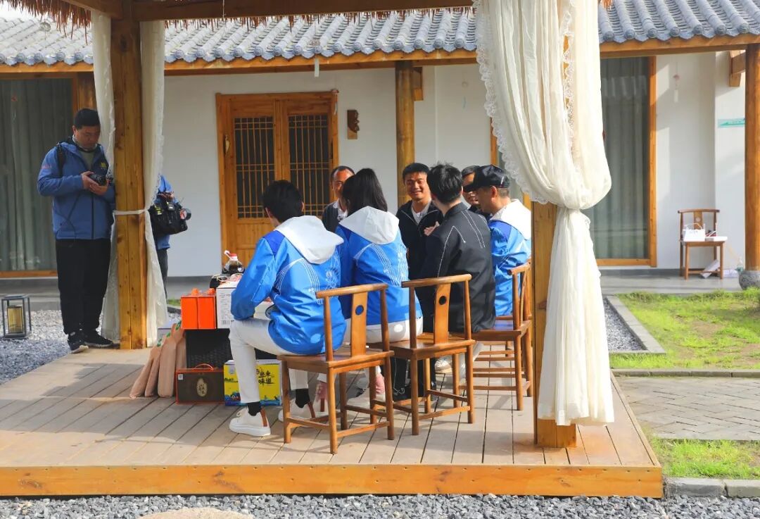 在资市镇玉古村古榆树共享农庄星光队员、阿里专家与刘利明、许兴涛、郭锋三位支书围绕古榆树共享农庄的由来以及特色农副产品等开始了直播间的“第一讲”