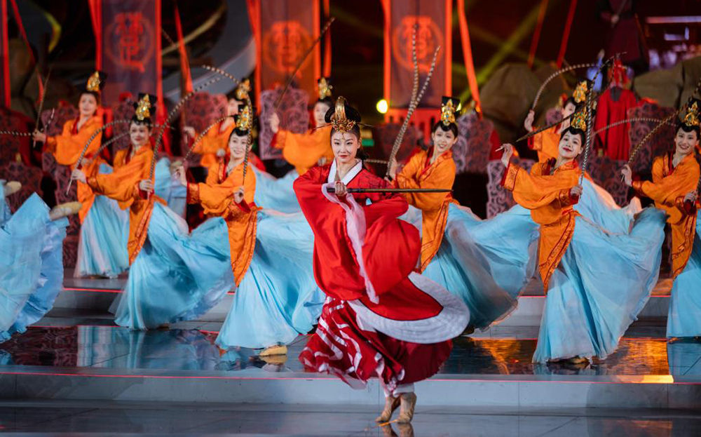荆州方特东方神画主题乐园组织的具有楚文化特色的表演受到游客欢迎。新华网发