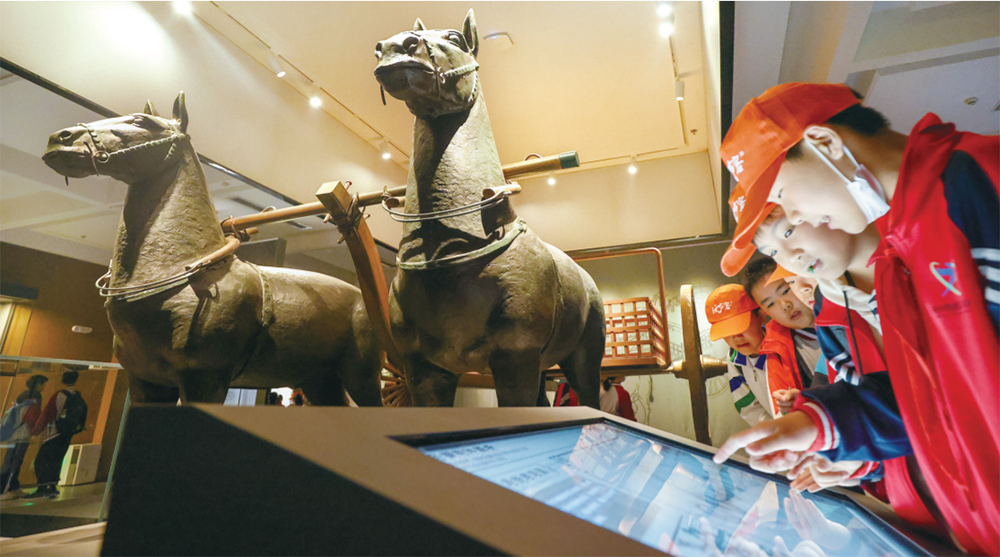 图为游客在荆州楚王车马阵陈列馆参观。新华网发(荆州市委宣传部供图)