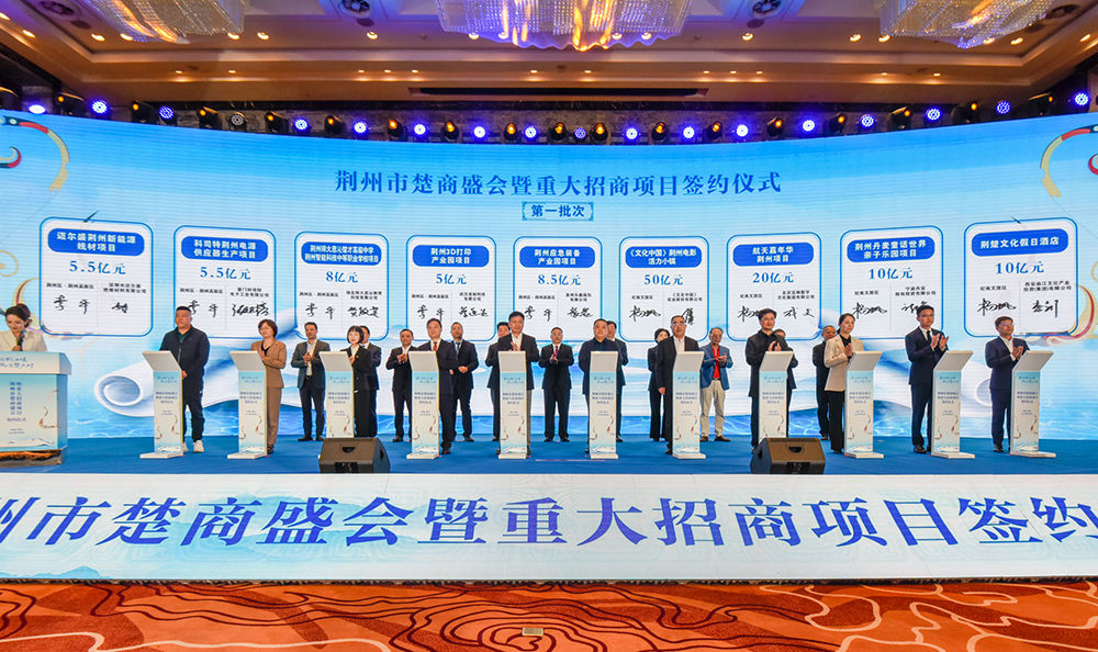 文化搭台,经贸唱戏。4月9日,在荆州市楚商盛会暨重大招商项目签约仪式上,64个重点项目签约,合同投资额1297.3亿元。荆州市产业发展顾问,中国黄金集团有限公司党委书记、董事长卢进说,古老文化与现代文化交相辉映的荆州,拥有包容万象、开拓创新、实干兴邦的优秀品质。“期待双方开展更高质量、更宽领域、更高效率的合作。”