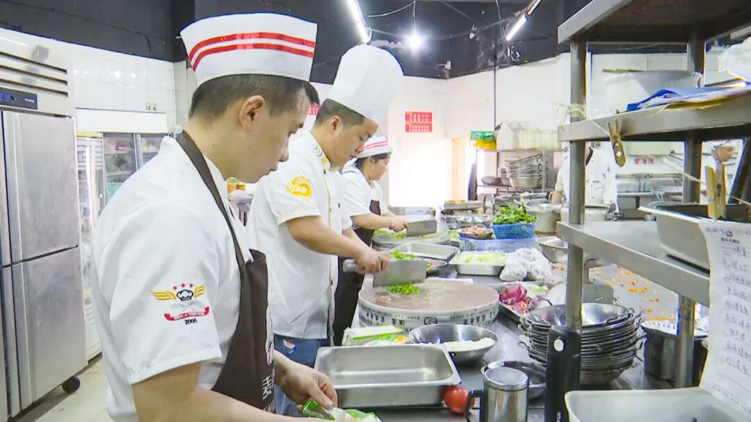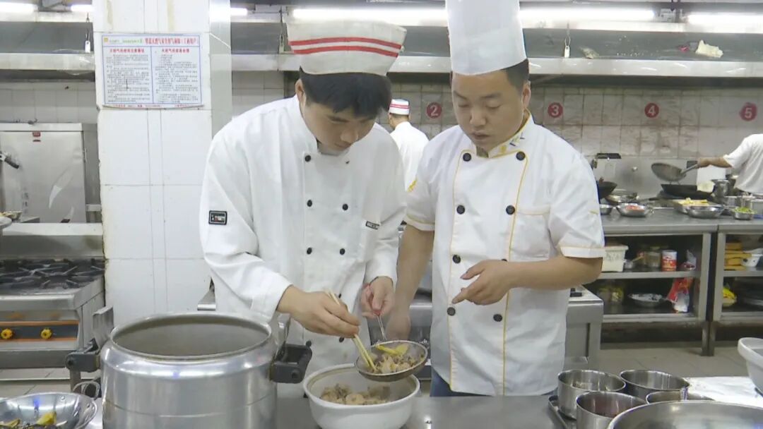 厨师学徒彭长青:徐老师平时要求我们做菜要快、准,出菜漂亮,他要求非常细致、严格。