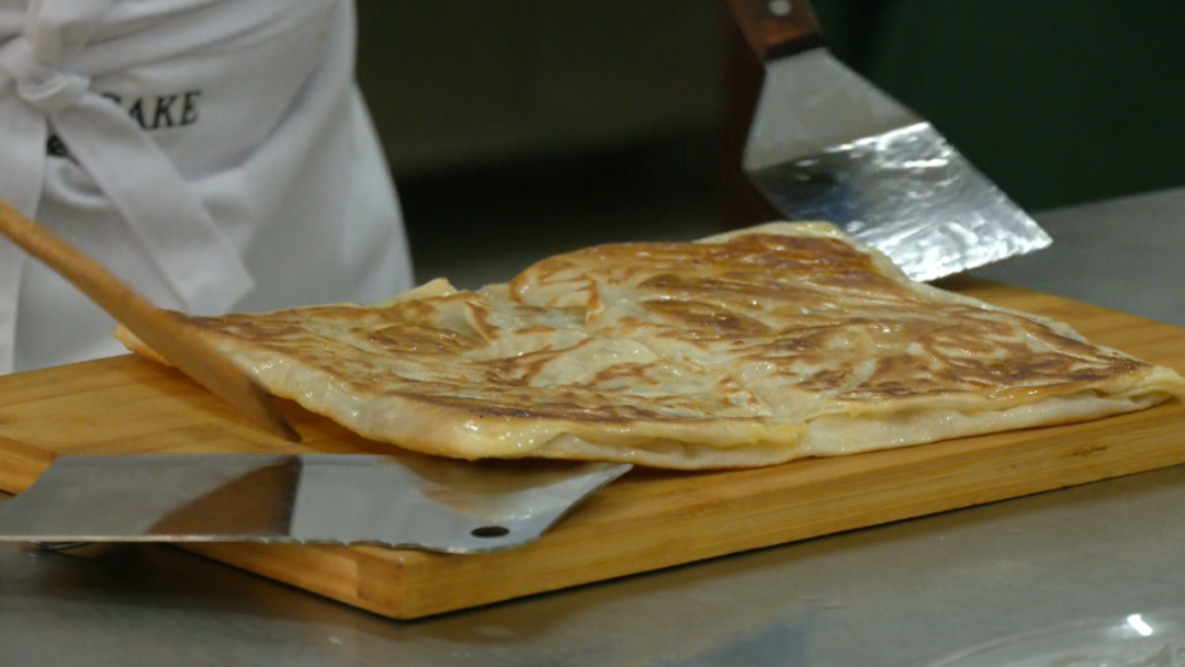 湖北荆州宇翔食品股份有限公司技术人员 王军:我们现在研究一种小吃,叫“印度飞饼”,它的特点是,做出来表皮金黄酥脆,内面薄如蚕丝,搭配多种口味供顾客选择。