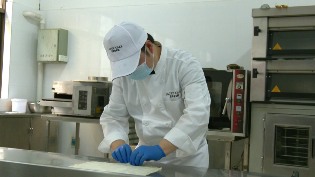走进湖北荆州宇翔食品股份有限公司,一股甜甜的奶香味扑鼻而来。伴着奶香味传来的还有擀面杖与桌子碰撞的声音。操作间里,面团和擀面杖在王军手里灵活又轻巧,随着擀面杖一次次的滚动,一张厚薄均匀的面皮便擀好了。