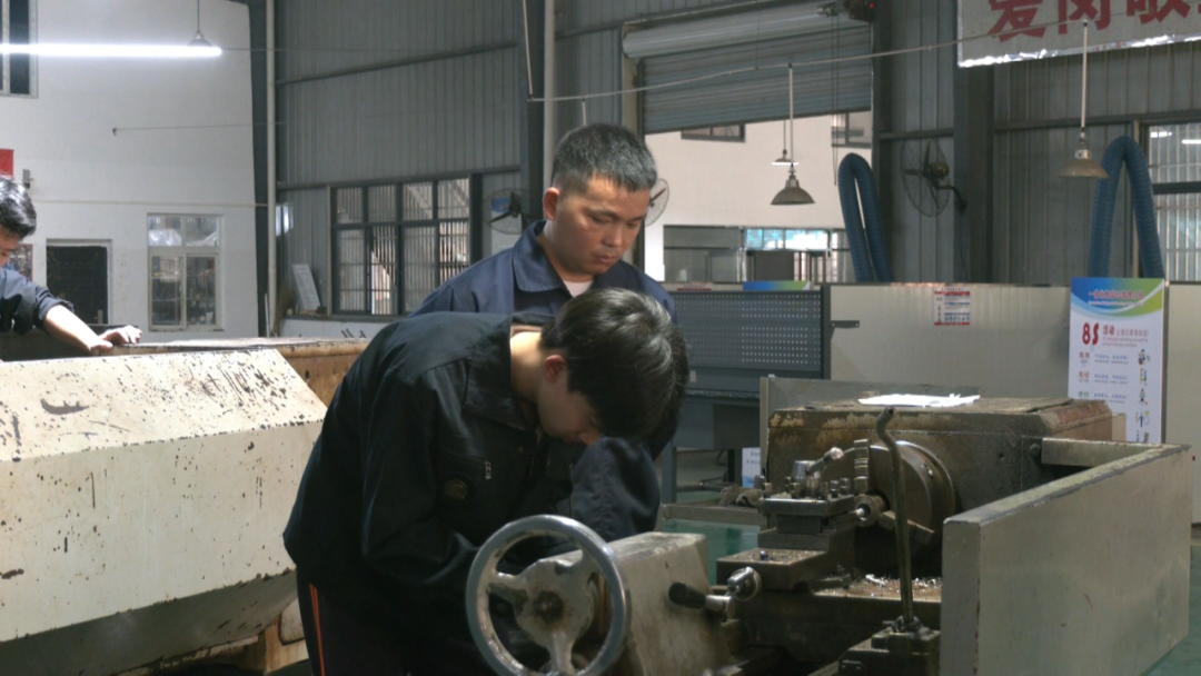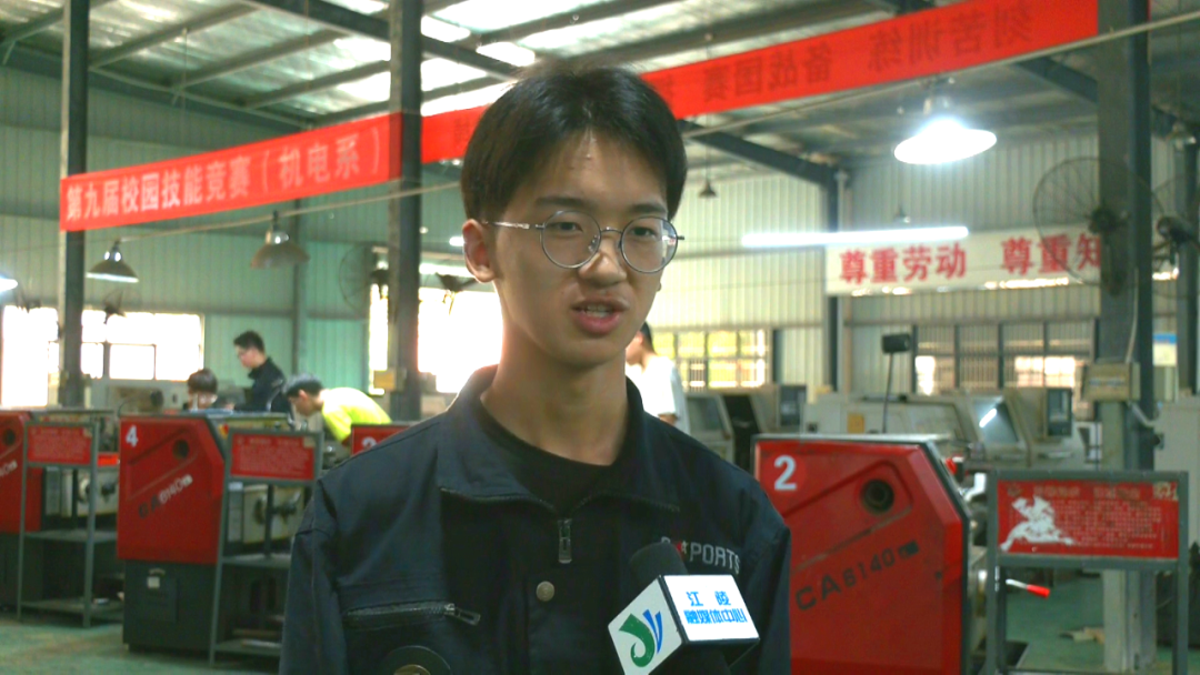 江陵县职教中心 农业机械使用与维护专业学生 范明耀:胡老师平时教学都是非常贴心的,磨刀都是手把手教我们磨,车削之类的都会先给我们演示一遍,我们不会的地方都会在车加工的过程中进行纠正。