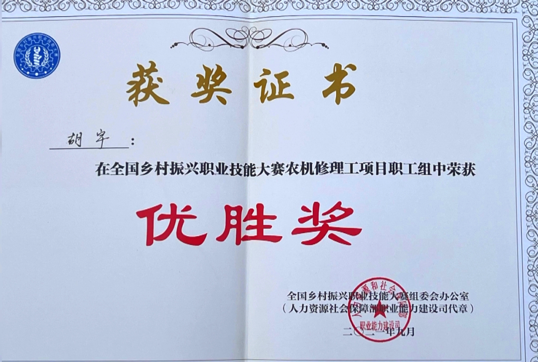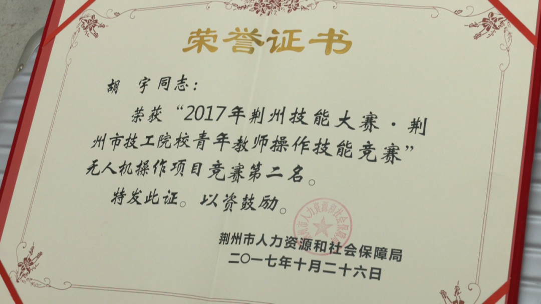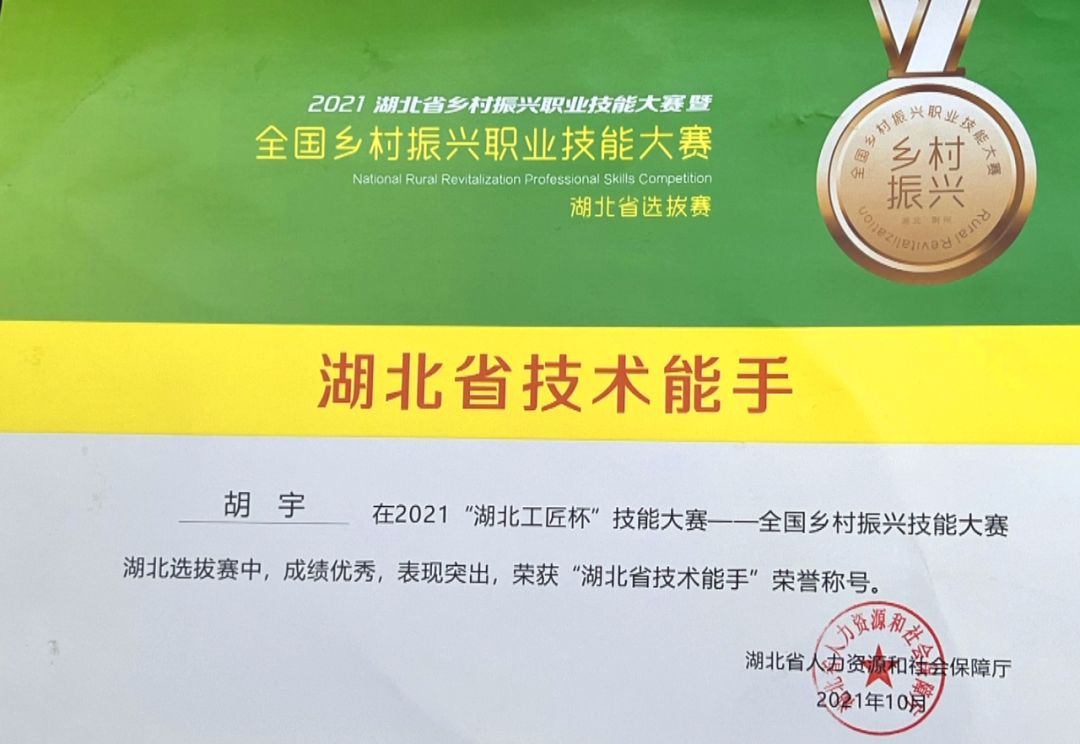 从2012年入职以来,胡宇先后荣获2017年度荆州市技工院校青年教师操作技能竞赛“无人机”操作项目竞赛第二名,2021年度“湖北工匠杯”技能大赛全国乡村振兴技能大赛湖北选拔赛“农机维修”赛项金奖并获得“湖北省技术能手”称号,2021年度全国乡村振兴技能大赛“农机修理工”项目职工组获得优胜奖。并在2021年指导学生参加荆州市第十三届职业学校技能竞赛“机械加工”项目获得三等奖。他说,通过这些比赛、学习,让他对自己的专业知识有很大的提升,有了更清醒的认知。