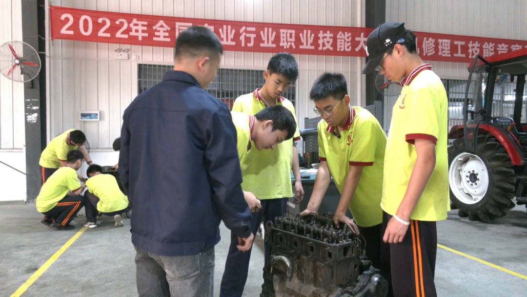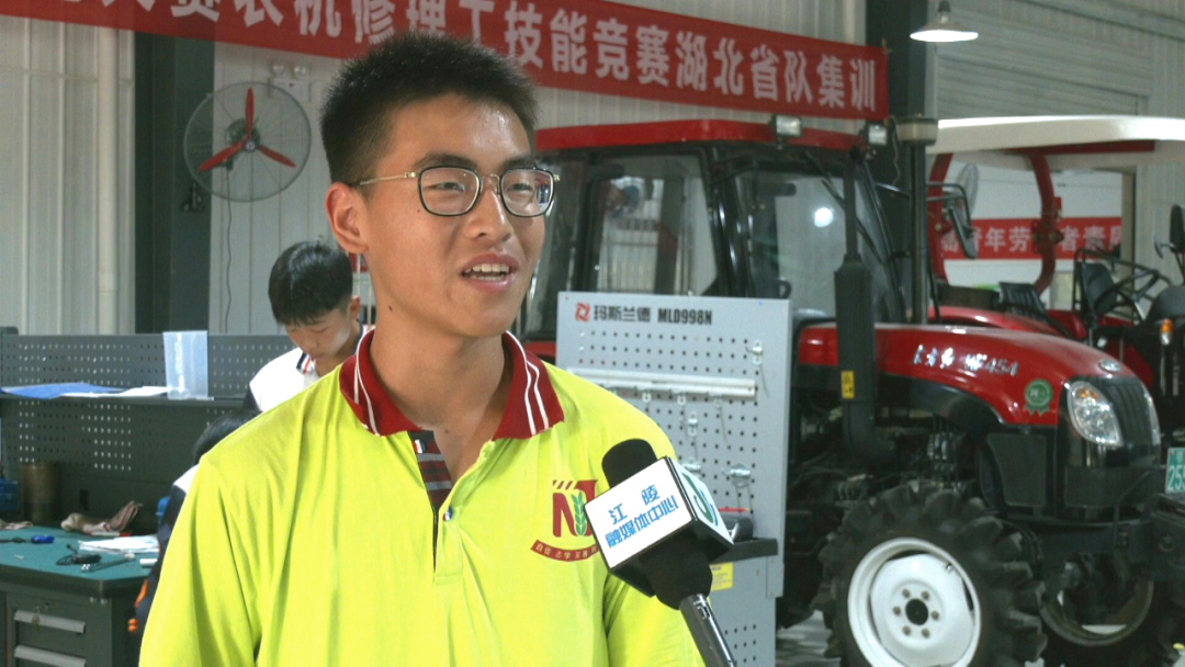 江陵县职教中心教师 胡宇:我们农机维修的学生日常会对联合收割机、拖拉机进行出车前的检修与保养和农机的电路故障诊断并找出故障原因,进行修理。通过模拟训练,以达到国赛的备赛要求和标准。