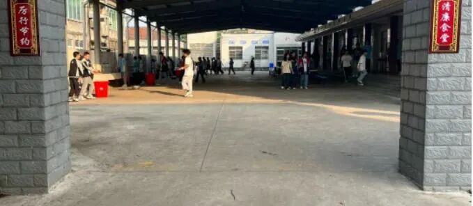 从北进入校门,学生食堂大门两旁“清廉食堂 厉行节约”八个古朴的大字映入眼帘,时刻警醒学校要办清廉食堂,时刻教育学生要勤俭节约,不浪费粮食。
