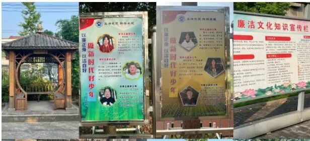 从教学楼走过中心路,是学校的清风苑。清风苑临路的是一面波纹状的清风墙,绿水青莲、梅兰竹菊、仙鹤白云等构成了一幅美丽的图画,画面中“廉洁文化进校园,清风正气润心田”的宣传语让人印象深刻。清风苑里还有内容丰富的宣传栏,向师生宣传廉洁文化。随着清廉学校建设活动的持续推进,该校教师用自己的实际行动践行着“廉洁从教,立德树人”的初心使命。
