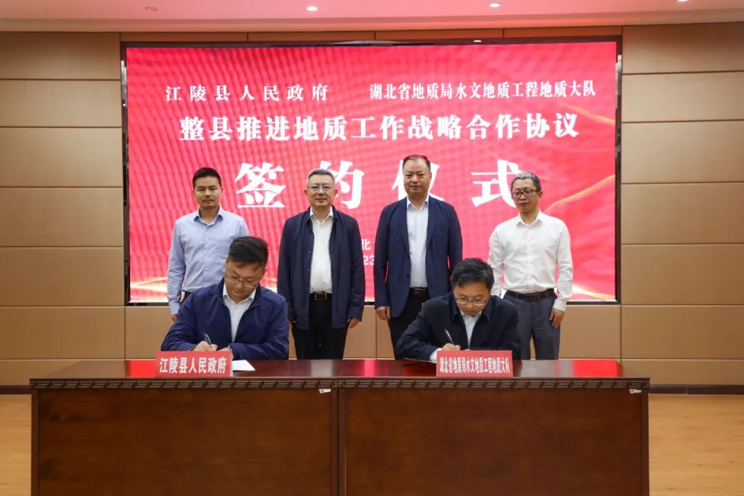 23日下午,江陵县人民政府与湖北省地质局水文地质工程地质大队举行整县推进地质工作战略合作协议签约仪式。省地质局党委书记、局长胡道银,县领导全运宝、杨锋、张瑜参加签约仪式。