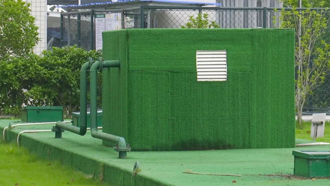 这块绿色区域,是县人民医院医疗污水处理站。每天,医院产生的综合废水会通过机械格栅初步过滤固态残渣后进入收集池,通过计量泵定量送入次氯酸钠,再经缺氧池、好氧池、沉淀池、消毒池后达标排放。这座污水处理站日处理量能够达到500吨,当前每天的处理量约300吨。