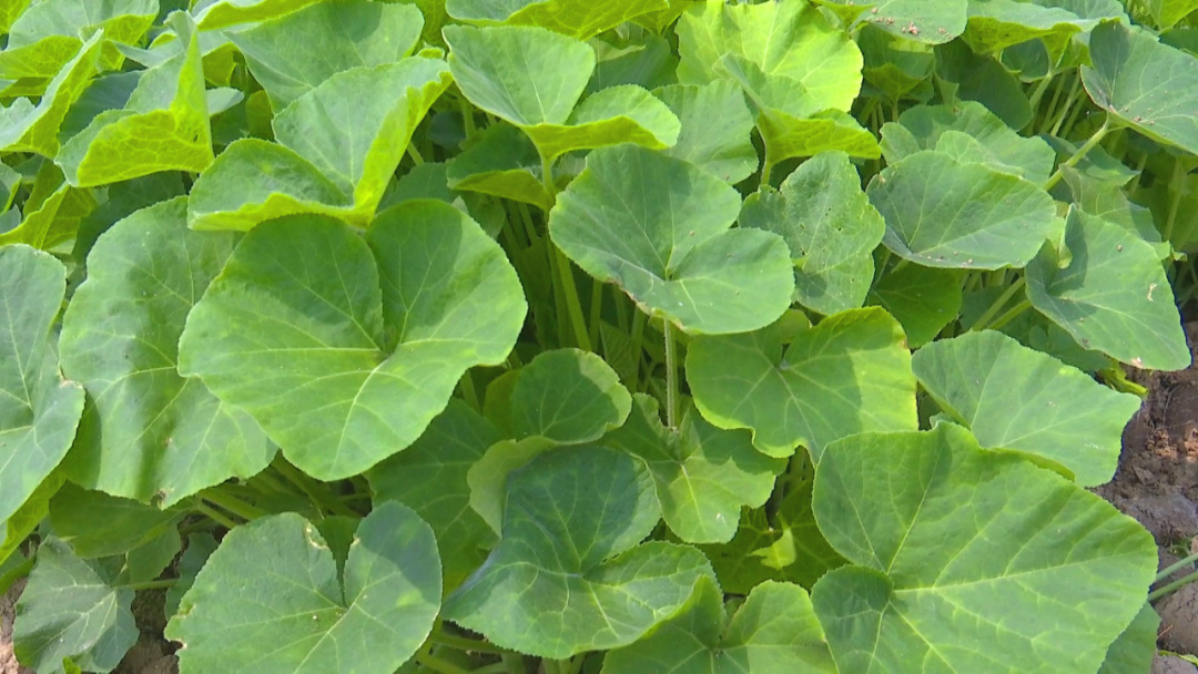 白马寺镇长河村党支部书记、村委会主任熊道彬告诉小新,目前用闲置土地、农户流转的坡地和鱼池坡种了一年南瓜,今年村里有64亩田,南瓜已经全部种下去了。