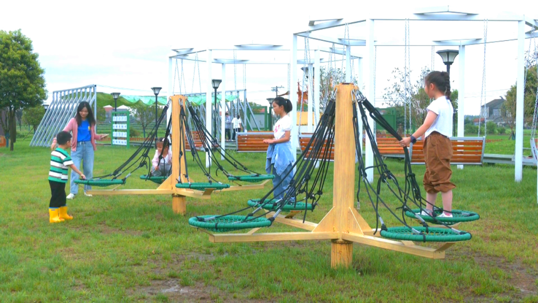 农庄里,游客们聚在一起依次开展尖叫鸡蒙眼打人、吊桥接力赛等活动,小孩子们在迷宫嬉戏玩闹,现场欢声笑语不断。尽管天空中有细雨飘落,但也抵挡不住游客们愉悦的心情。