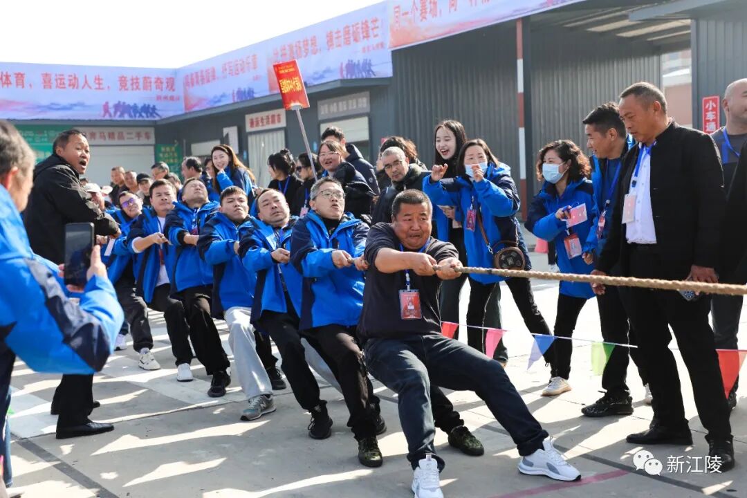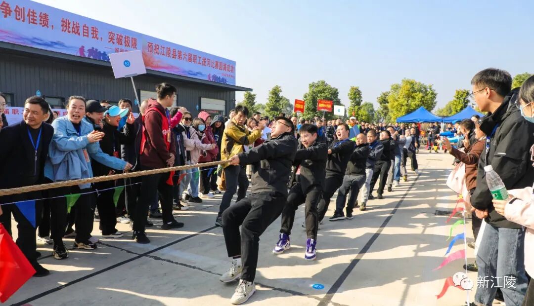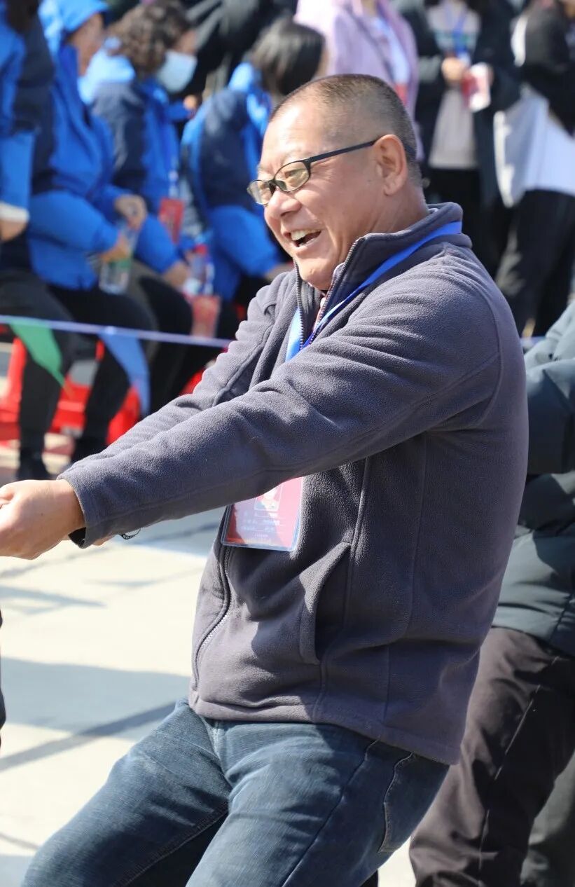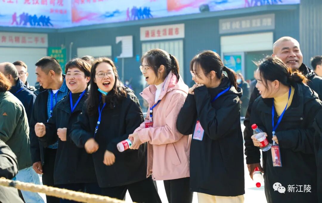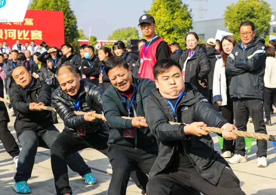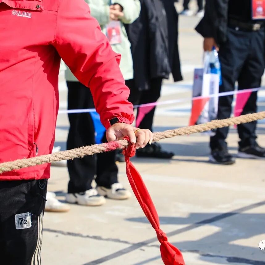 随着哨声响起双方选手们紧握长绳沉下身子、咬紧牙关铆足劲儿与对手展开角力绳子上的红色指示标记不停地左右拉扯