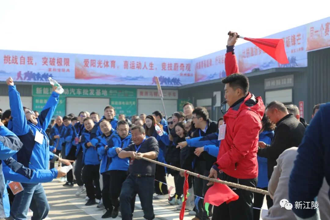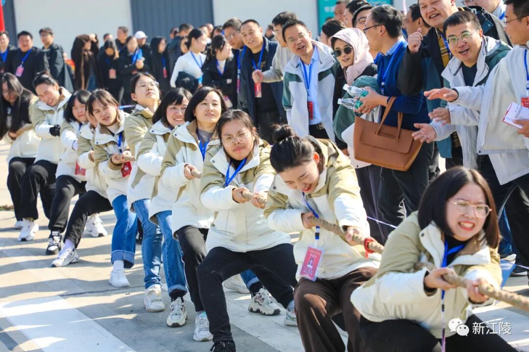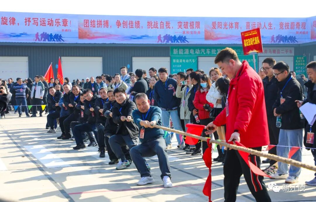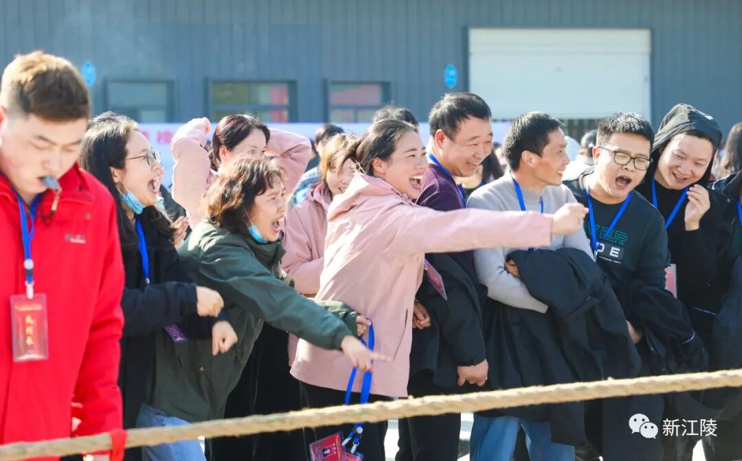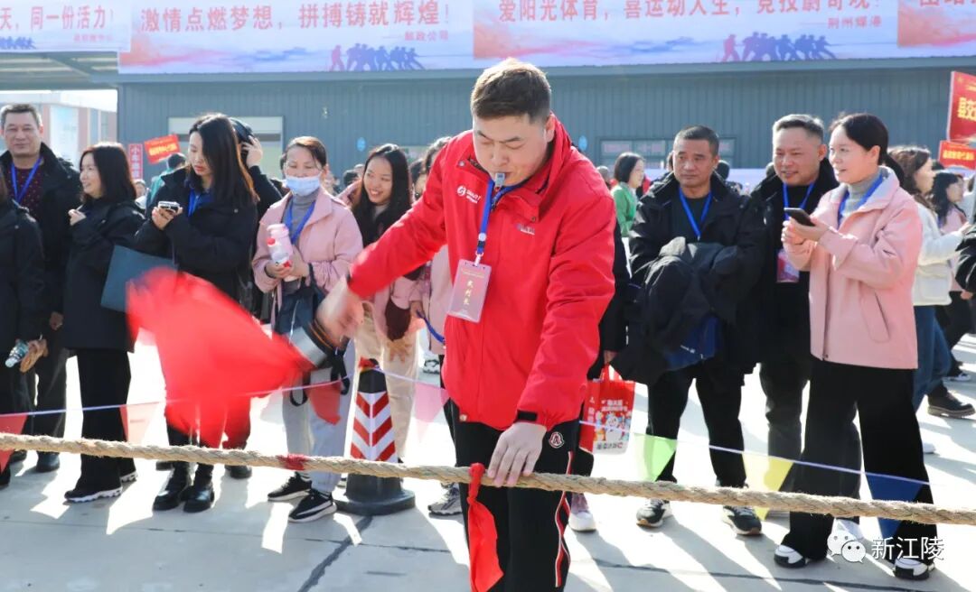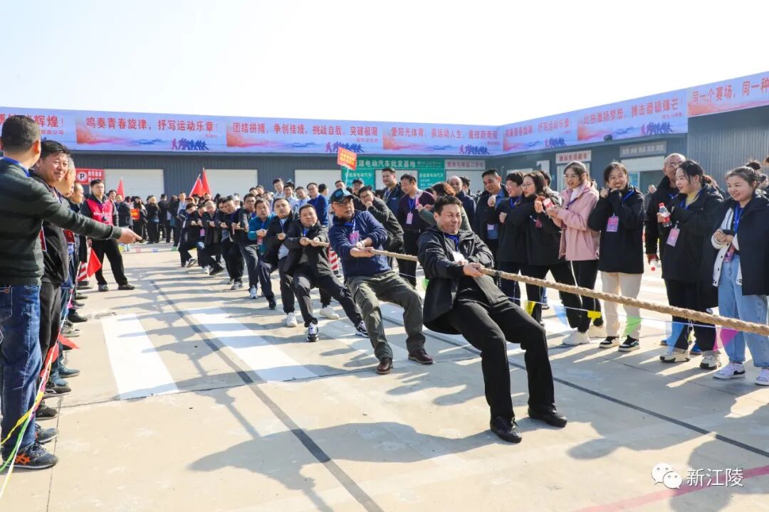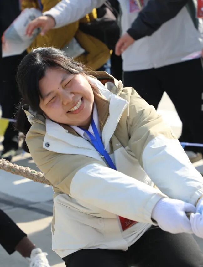 随着哨声响起双方选手们紧握长绳沉下身子、咬紧牙关铆足劲儿与对手展开角力绳子上的红色指示标记不停地左右拉扯
