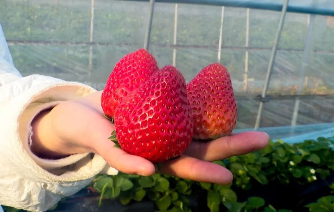 草莓是冬季水果中的“贵族”,更是被誉为“水果皇后”,果肉紧实,味道鲜甜。据合作社负责人介绍,红颜草莓采摘期较长,即使生长在同一株上,草莓成熟的时间也会有差别,采摘期能延续四、五个月。